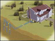 在冬季,地源热泵系统通过埋在地下的封闭管道(称为环路)从大地收集自然界的热量,而后由环路中的循环水把热量带到室内。再由装在室内的地源热泵系统驱动的压缩机和热交换器把大地的能量集中,并以较高的温度释放到室内。
